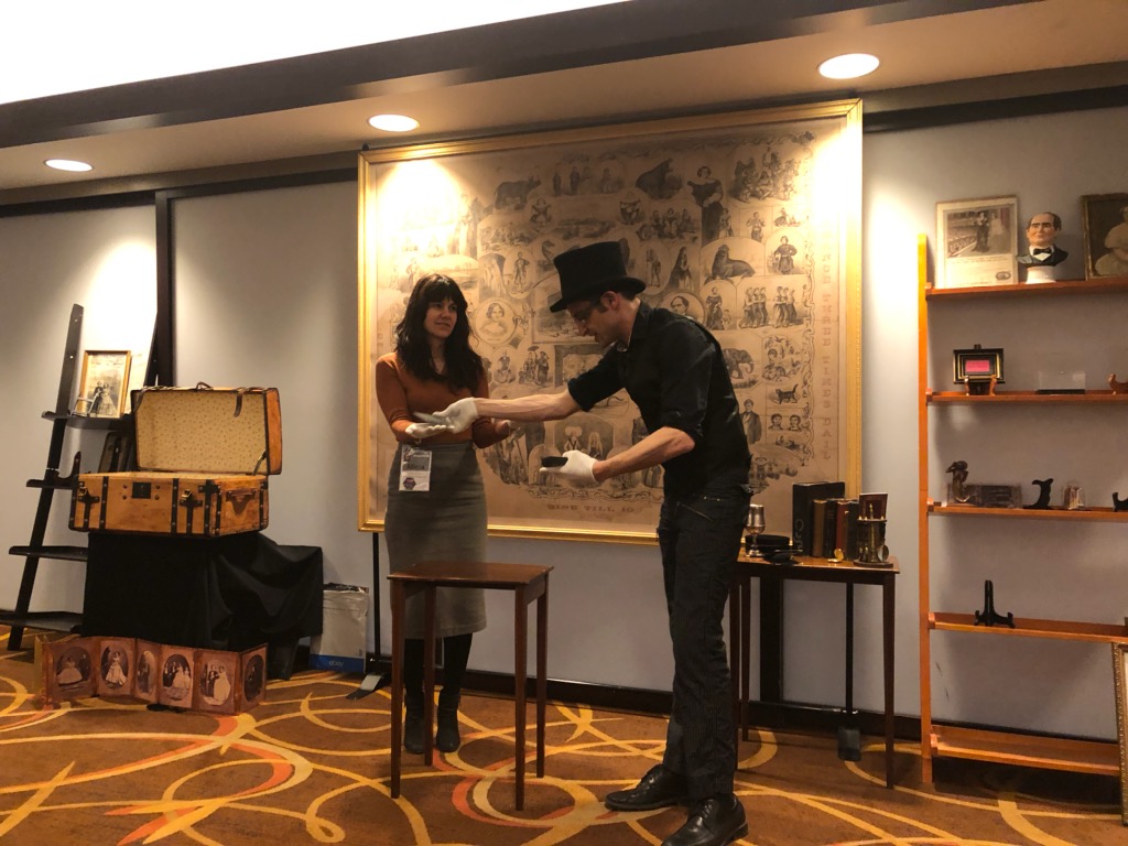 - Description: As part of the conference, we had the option of attending a participatory performance about PT Barnum. It is a traveling show that goes to schools and other museums. David London shares the story of PT Barnum in a fun and interactive way, using both real objects and facsimiles. It was a fantastic take on the life of Barnum, and it was interspersed with activities, objects, and magic (London is also a magician).